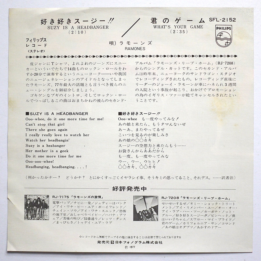 RAMONES – Suzy Is A Headbanger