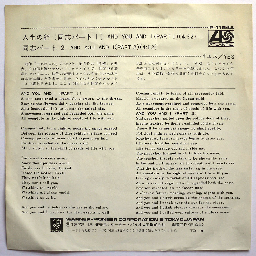YES – And You And I (Part I)